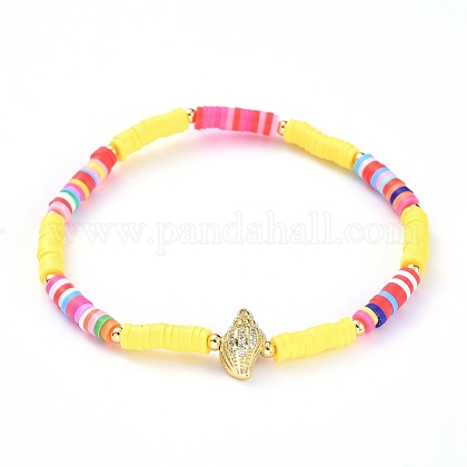 手作りポリマー粘土heishiビーズストレッチブレスレット 巻き貝の形の真ちゅう製の透明なキュービックジルコニアビーズと丸い真鍮製ビーズ きいろ 2 1 4インチ 5 7cm の通販 Jp Pandahall Com